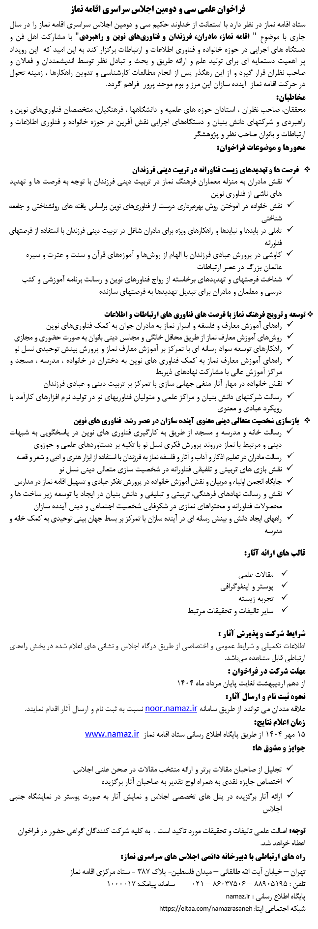 فراخوان سی و دومین اجلاس سراسری نماز