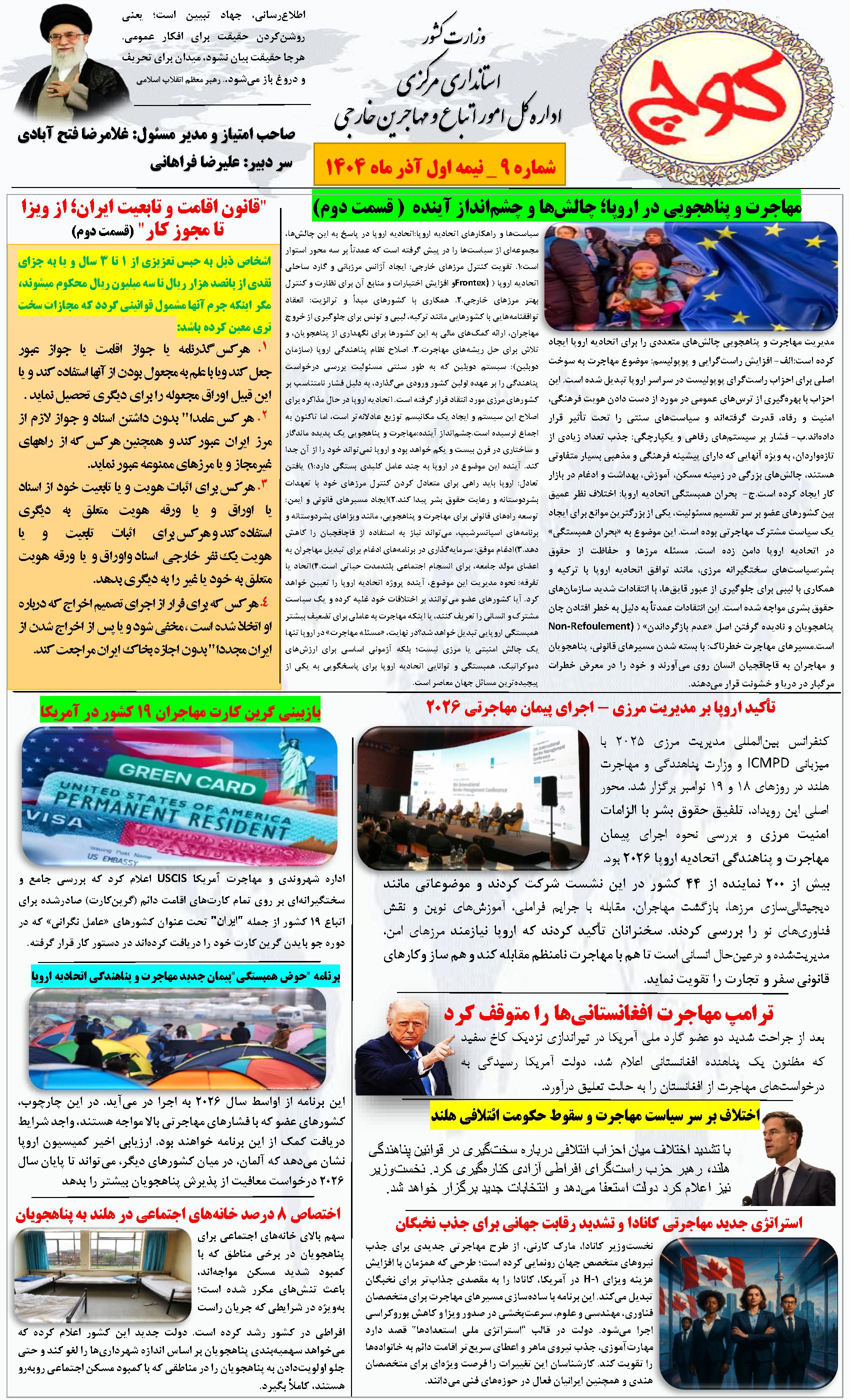 نهممین شماره نشریه کوچ، توسط دفتر امور اتباع و مهاجرین خارجی استان مرکزی منتشر گردید.