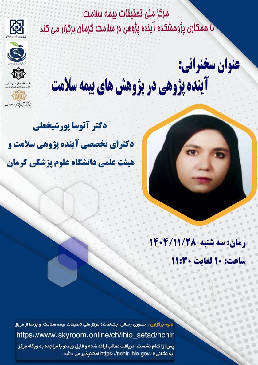 نشست علمی - تخصصی آینده پژوهی در پژوهش های بیمه سلامت ۲۶ بهمن ۱۴۰۴ | ۱۲:۱۹ کد : ۵۸۰۱۲ اطلاعیه ارسال به دیگران نام شما ایمیل شما ایمیل دریافتکننده ارسال انصراف تعداد بازدید:۵۸ نشست علمی - تخصصی آینده پژوهی در پژوهش های بیمه سلامت